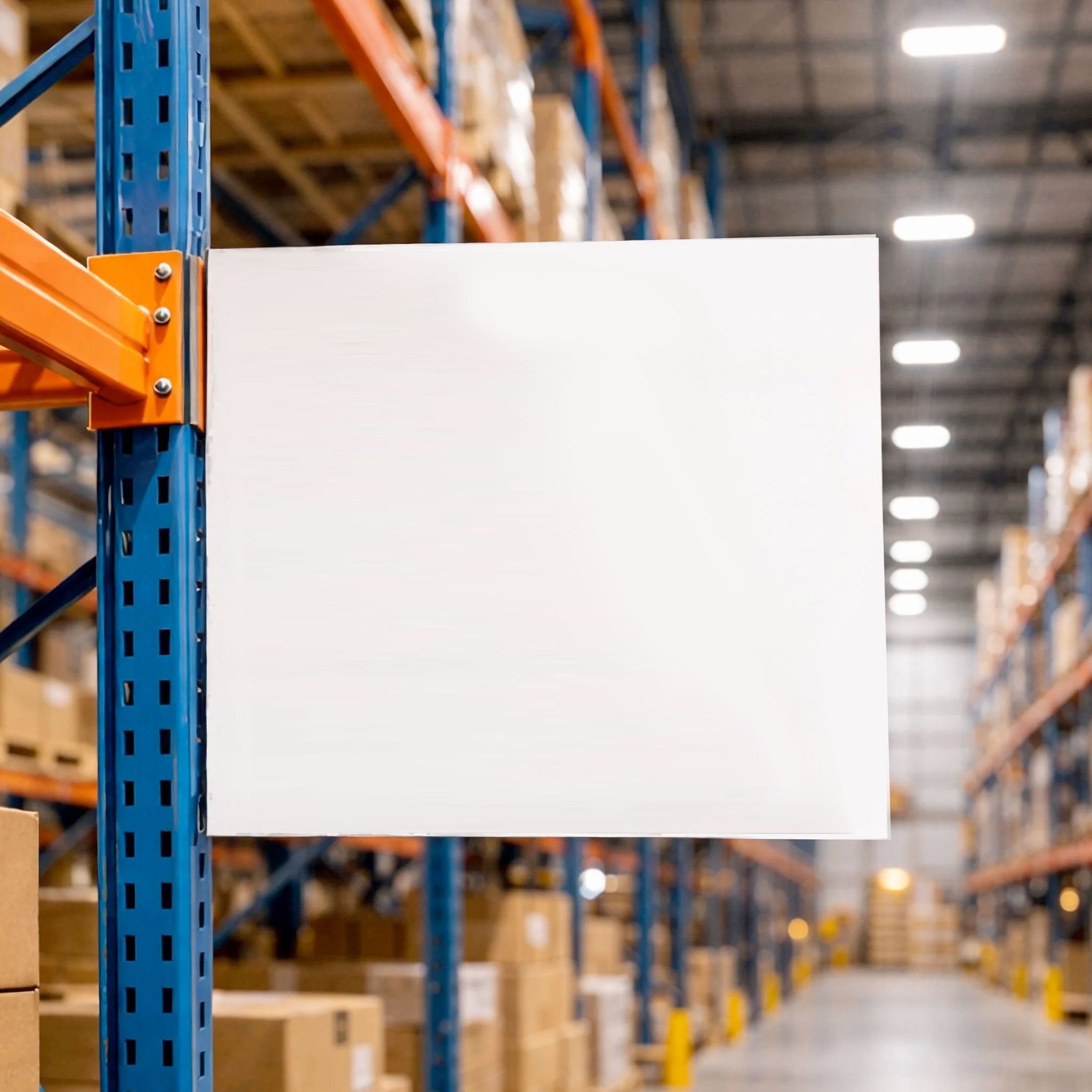 Construction: Rigid, impact-resistant polystyrene body with high-contrast vinyl graphics. Lightweight yet stiff to maintain a clean, professional appearance without sagging during daily warehouse use.