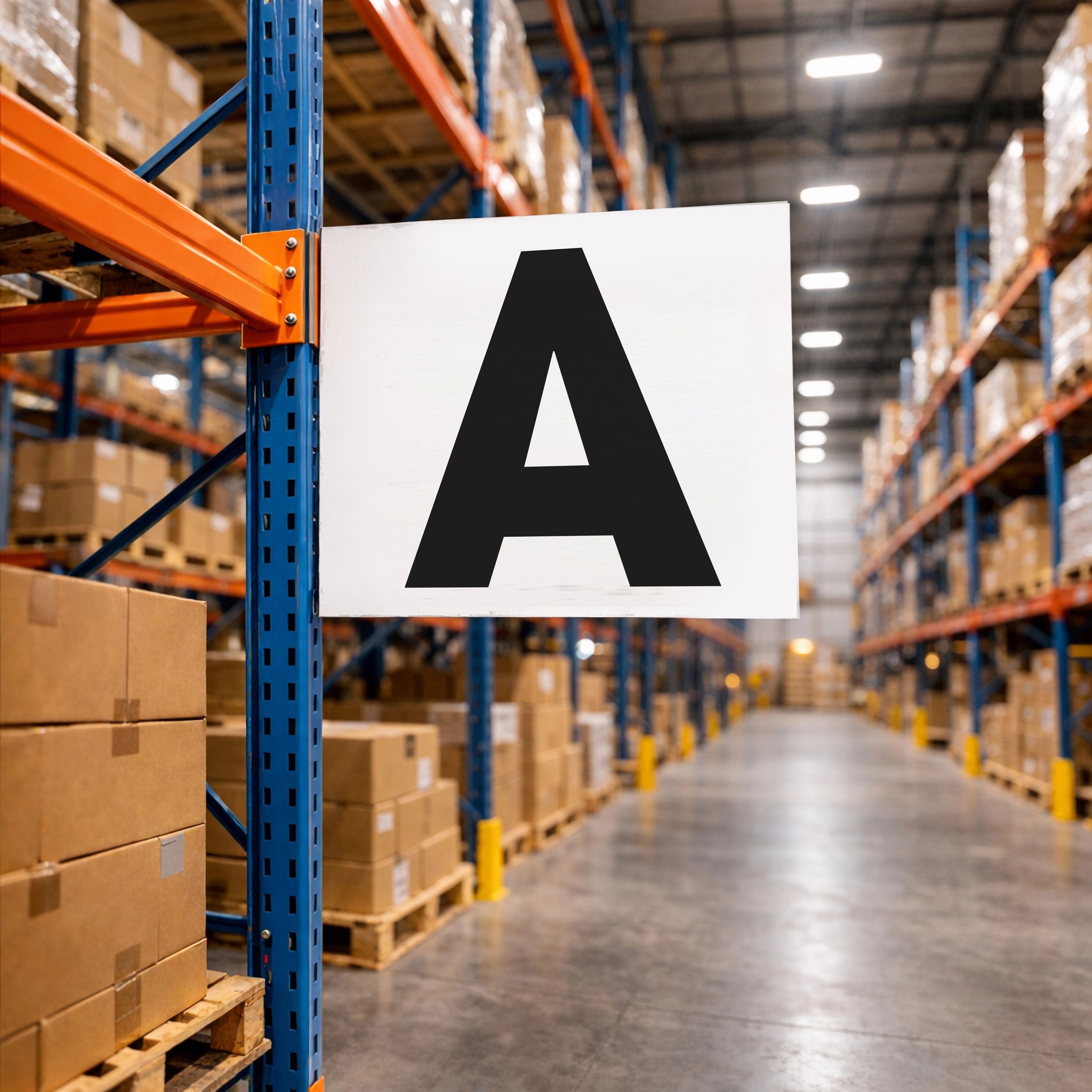 Ideal For: Warehouse aisle lettering, zone picking systems, alphabetical inventory organization, fulfillment centers, distribution hubs, manufacturing floors, and backroom storage areas.